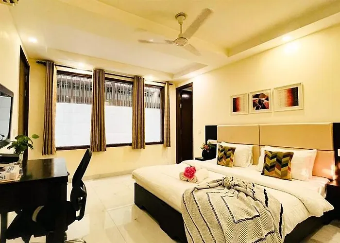 Genesteld in de wijk DLF Phase II, dit appartement biedt een snelle toegang tot de luchthaven Indira Gandhi binnen 20 minuten rijden. De 1-badkamer accommodatie ligt binnen een autorit van 10 minuten vanaf het Winkelcentrum Ambience Mall in Gurgaon.